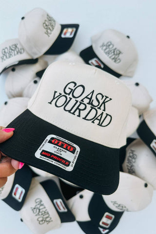 Bring some fun to your casual look with the Go Ask Your Dad Trucker Hat. It features a classic fit and mid-profile structure with a firm front panel that keeps its shape. Made from a sturdy 65% polyester and 35% cotton blend, this canvas hat offers durability and breathability. The adjustable back makes it easy to find your perfect fit, making it the ideal playful accessory for everyday adventures.