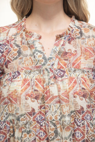 - V-neckline with ruffle detail