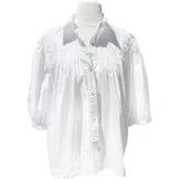 Crafted in pristine white cotton, this blouse features a traditional collar that can be worn up for a polished, structured look or left open and casual. The collar has just enough body to hold its shape beautifully however you choose to style it. The relaxed silhouette drapes elegantly without feeling oversized, making it the perfect foundation piece for everything from denim and boots to tailored trousers and loafers.