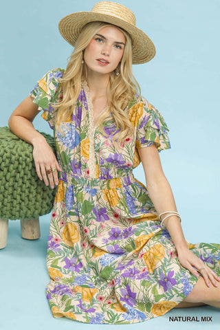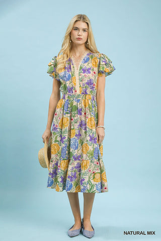 Romance blooms in this enchanting floral dress, designed for the woman who moves through her day with grace and ease. The multi-color floral print dances across a flowing silhouette, while thoughtful details elevate this piece from pretty to unforgettable.