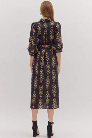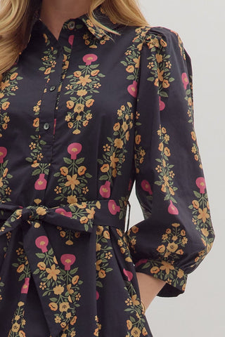 Bring a fresh burst of nature to your wardrobe with this playful Navy Botanical Dress. Featuring charming puff 3/4 sleeves and a flattering midi length, it’s designed with a button-front closure and a detachable waist tie to mix up your look. Side pockets add a cheeky touch of convenience, while the lightweight, non-sheer 100% cotton woven fabric keeps you cool and comfortable. Fully lined for ease and style, this dress is perfect for twirling through sunny days or casual evenings out.