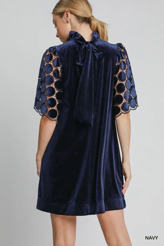 Step up your style game with this playful Velvet High Neck Dress, featuring a chic dotted velvet lace that adds a flirty texture to your look. Its high neck design brings a touch of elegance while the velvet fabric offers a subtle shine that changes with each colorway. Crafted from a comfy blend of polyester and spandex, it moves with you for all-day fun. Whether you're stepping out or staying in, this dress is ready to make every moment a little more magical.
