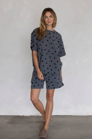 Cody Polka Dot Top Dots never go out of style—especially when they're this charming. This playful tee features an all-over polka dot pattern on a soft cotton blend that feels as good as it looks. Whether you're layering it under a jacket or letting it shine solo, it's the kind of piece that makes getting dressed fun. Casual comfort meets timeless appeal.