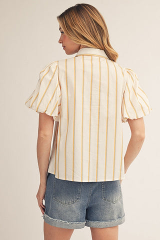 Crafted from 100% cotton with a crisp, breathable feel, this top features classic stripes that never go out of style. The short puff sleeves add volume and movement, while the Western-inspired embroidery details bring a touch of personality that sets it apart from your average button-down. The front button closure makes it easy to layer or wear on its own, tucked into denim or paired with your favorite skirt.